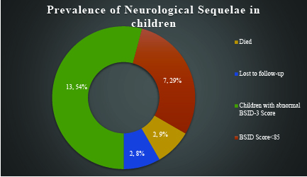 The mean BSID-III cognitive score for children was 84.71 (N = 17; SD 7.4), indicating mild cognitive impairment. But none of the study subjects had a cognitive composite score of less than 70, showing that the cognitive ability of children was not moderately or severely impaired.7