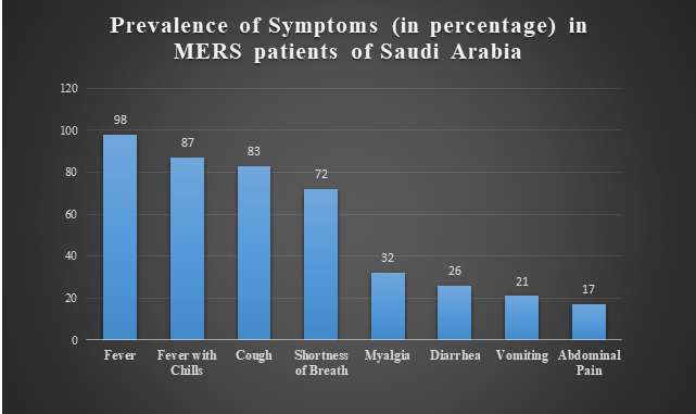 In a study reported from Saudi Arabia, a CFR of 60% was reported amongst 47 patients (46 adults and one child) with laboratory-confirmed MERS. Moreover, the case-fatality rate was higher in the elderly. Only two of the 47 patients had previously been healthy. The vast majority of patients (45 [96%]) had underlying medical conditions as shown in Figure 1. The clinical symptoms are listed in Figure 2.11