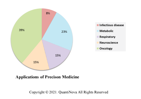 Certainly, the oncology area is dominating the application of precision medicine. However, recently, pharmaceutical companies have shifted their therapeutic focus beyond oncology therapies and moved towards non-oncology areas including neurological diseases, inflammatory diseases, endocrinology (such as diabetes), infectious diseases (such as AIDS and hepatitis), etc. 11