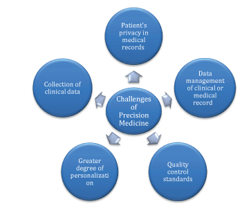 To achieve what precision medicine has promised, shifts on multiple levels (such as data collection, diagnosis, treatment decisions, etc.) are expected to occur. These shifts create challenges, including standardizing the collection of clinical data from volunteers across the country, protecting the privacy of collected data, designing databases for proficient storage of this amount of data, etc.9